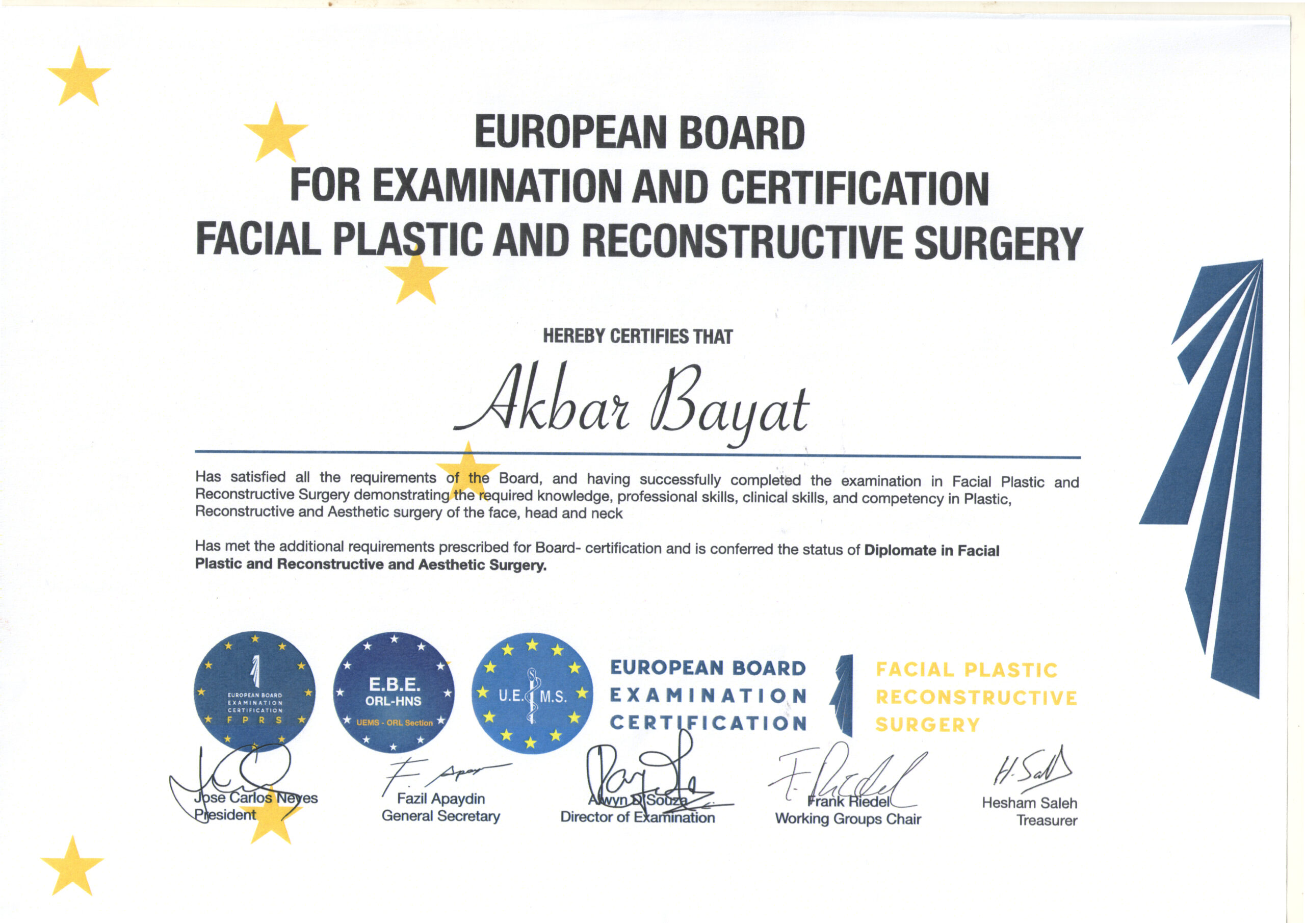 دکتر اکبر بیات جراح لیفت صورت، متولد سال ۱۳۵۴ است. علاقه وافر ایشان به علم و دانش باعث شد که در سال ۷۳، تحصیلات خود را در رشته ی دکتری عمومی آغاز کند. از آنجایی که تشنه فراگیری علوم بیشتری بودند، به همین مقطع اکتفا نکردند و در سال ۸۴ با شرکت در آزمون دکتری تخصصی توانستند در رشته گوش و حلق و بینی در دانشگاه علوم پزشکی شیراز پذیرفته شوند.