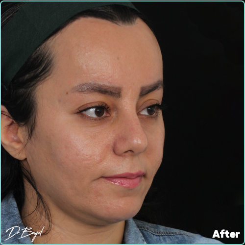 إلى أن جاء يوم، وخلال بحثي في يوتيوب، اكتشفت وجود عملية تُسمّى تصغير الجبهة. وبمزيج من الأمل والتردد، راجعت أطباء مختلفين وبحثت كثيرًا، وفي النهاية اخترت الدكتور بيات نظرًا لمهارته في الترميم ودقته في تحسين أثر الندبة.