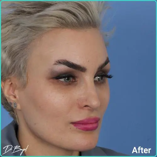 تؤدي جراحة تقصير الجبهة لدى النساء إلى تقليل العمر الظاهري وتعزيز جاذبية العينين بشكل غير مباشر.