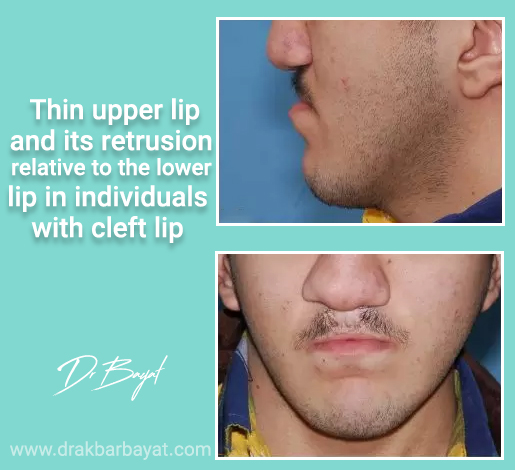 نظرًا للخلل الموجود في تواصل عضلات الشفة عند هؤلاء الأطفال، تكون عضلات الشفة العليا في معظم الحالات ضعيفة وقليلة الحجم، وهذا يجعل الشفة العليا تبدو ضيقة جدًا عند النظر من الأمام، ومن الجانب تكون متراجعة بشكل كبير مقارنة بالشفة السفلى. لذلك، زيادة حجم الشفة لهذه الأشخاص والعمليات الجراحية