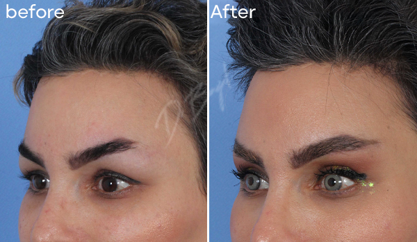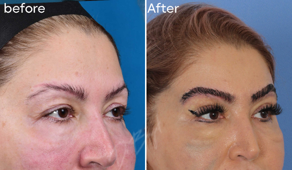 If, after an eyebrow lift, tattoo, or transplantation, the brows are positioned too high and create an unnatural look, a sub-brow lift can effectively restore them to a more natural position.